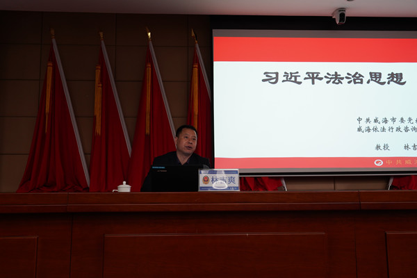 近日,威海市公安局紧密结合当前正在开展的“坚持政治建警全面从严治警”教育整顿活动,邀请中共威海市委党校法学教研部主任、教授林吉爽讲授习近平法治思想。市局在家党委班子成员,市局相关部门、警种负责同志,市局机关全体民警在市局主会场参加,各区、市分局及有关警种全体民警通过视频会议在分会场参加。 习近平法治思想内涵丰富、论述深刻、逻辑严密、系统完备,林吉爽教授从重大意义、科学体系、精髓要求和实践要求等方面做出了深刻讲解。除了专家集中授课外,讲座后还组织了交流讨论、撰写心得体会等活动,把“抓学习、强教育、讲体会、比干劲”融合贯通,促进学习走深走实。习近平法治思想学习活动充分体现了市局党委纵深推进法治公安队伍建设,全面从严管党治警,努力锻造“四个铁一般”公安铁军的信心和决心。 广大民警纷纷表示,要以习近平法治思想引领实践,牢牢把握公安机关的使命任务,加强队伍建设,锻造高素质过硬公安铁军,坚决捍卫政治安全、维护社会安定、保证人民安宁。